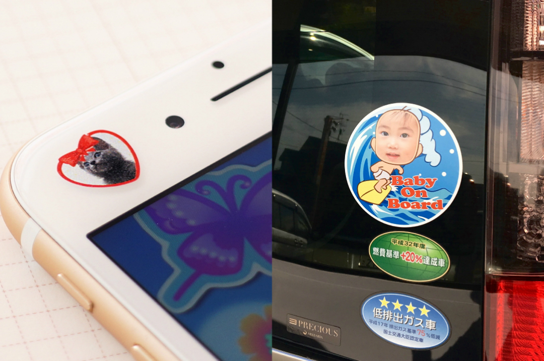 シールの素材は紙ではなくポリエステル製なので、お弁当箱に貼って毎日洗っても、車やバイクに貼って雨風を受けても大丈夫。UVコーティングもしてあるので色褪せにも強さを発揮します。(褪色については経年劣化致します)